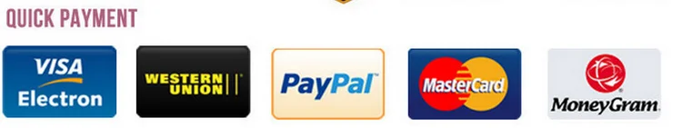 We accept T/T, Paypal, Western Union, Escrow, etc. If you need more detail, please feel free to